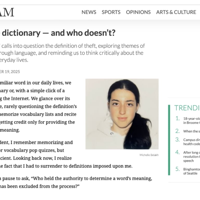 Published in Binghamton’s Pipe Dream in print, producing analytical essays and linguistics-themed commentary with strong engagement across Instagram, Threads, and other platforms.